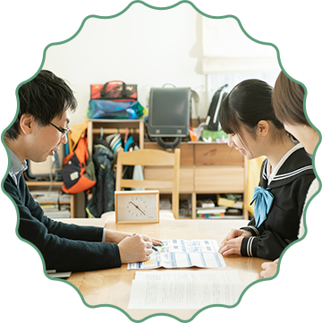 高校での学習内容は出題範囲が広く難易度も高いので、指導時間だけでは全てをカバーすることは不可能です。そこで高校生の生徒様には、家庭学習や学校の授業の理解度を高める勉強法を指導させて頂いております。